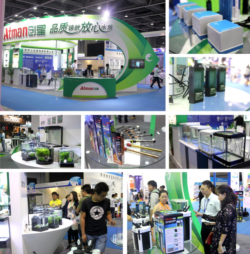 我們把本次參展看作是2015年産品研發的閱兵場,展會上秀出瞭以“微水族”爲概念的新一代配套式魚缸,新研發的節能水泵,氣泵(氣立方),新型加熱棒(猛将,金剛),新升級的AT缸外生化過濾桶系列等等。
